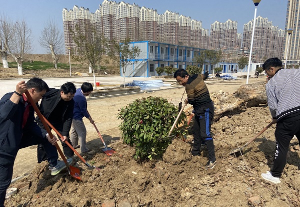 3月11日上午,全国第44个“植树节”来临之际,校园基本建设处党支部组织党员与安徽建工集团党员同志在“安徽建工集团安徽理工大学在建项目部社区”共同开展“党员进社区,业务植树活动”。