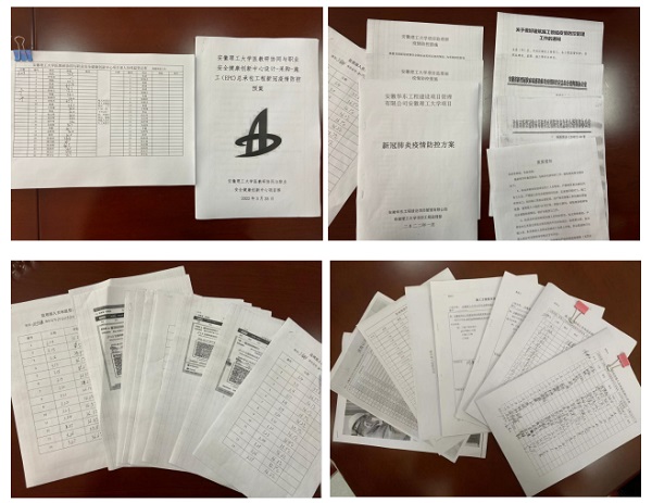 会上,丁志强通报了上级疫情防控最新指示和精神,带领与会人员认真学习了《安徽理工大学2022年疫情防控督查工作方案》《关于做好校园封闭管理期间疫情防控工作的通知(第1号)》。他要求基建处、总承包单位、监理单位要切实认识当前疫情防控形势的严峻和复杂,要进一步提高政治站位,做到守土有责,守土尽责,切实把思想和行动统一到上级的决策部署上来,积极主动履职;要进一步严肃工作纪律、完善应急预案、强化工地封控和大门管控、紧急摸排特殊重点人群信息、加强特殊重点人员管理等,扎实开展工作,确保疫情防控落到实处,项目建设安全稳定。会议结束后,校园基本建设处对总承包单位、监理单位疫情防控预案、“晨检、午检”记录、人员体温测量记录、人员安康码和行程码、请销假手续等材料以及防疫物资准备、施工围挡、人员管控等方面内容进行了检查。
