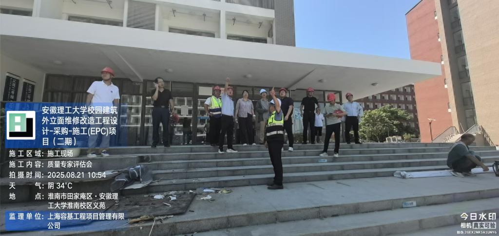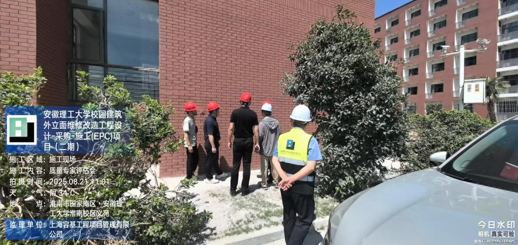 为切实保障“校园建筑外立面维修改造项目”施工质量,8月21日上午学校邀请淮南市建筑管理处、淮南市高新区建设局等部门专家开展了项目质量评估工作。校园基本建设处、总承包单位--安徽建工集团有限公司、监理单位--上海容基工程项目管理有限公司、跟踪审计单位--安徽九通工程项目管理有限公司相关负责人员参加评估工作。